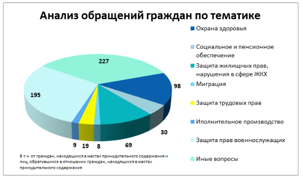 Наибольшее количество обращений поступает по самой актуальной теме сегодняшнего дня - защиты прав военнослужащих.