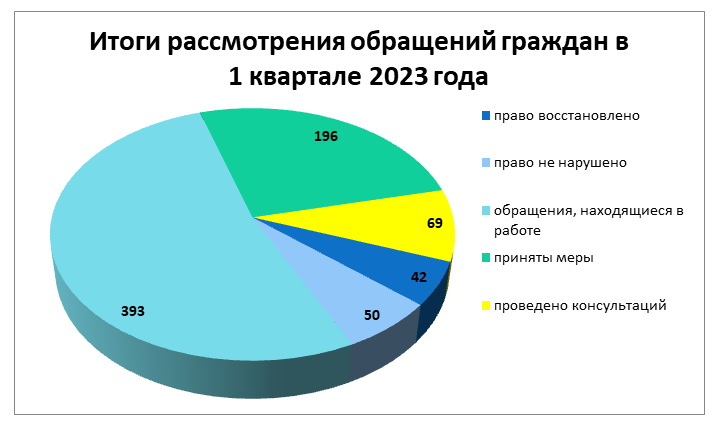 Но в большинстве случаев по результатам рассмотрения обращений приняты меры по устранению проблем заявителя, даны консультации или права восстановлены.