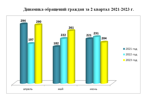Наглядно объёмы работы с обращениями граждан Уполномоченного по правам человека в Иркутской области во 2-м квартале представлены в диаграммах ниже, а также в разделе Статистика /page/ombudsman_rubrics-119