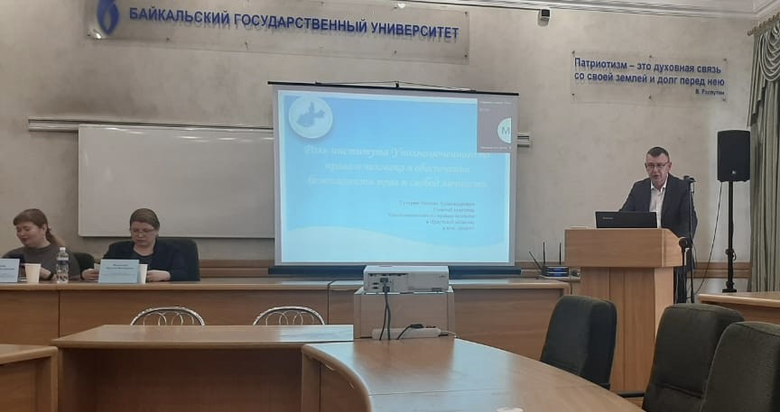 С докладом «Роль института Уполномоченного по правам человека в обеспечении безопасности прав и свобод личности» выступил сотрудник аппарата Уполномоченного по правам человека в Иркутской области Сутурин Михаил Александрович.