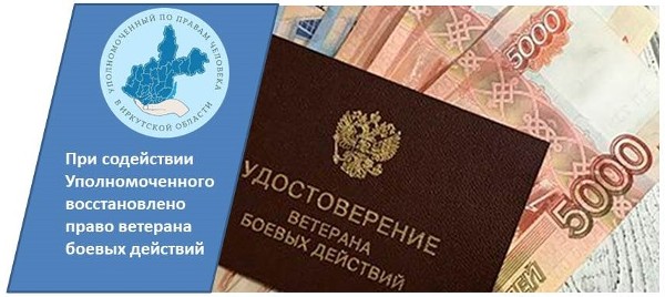 В феврале 2025 года в адрес Уполномоченного обратилась гражданка П., супруга действующего военнослужащего Вооруженных Сил Российской Федерации, с просьбой оказать содействие в направлении военнослужащего на прохождение военно-врачебной комиссии для определения категории годности к военной службе, а также в назначении ежемесячной денежной выплаты, установленной Федеральным законом от 12 января 1995 года № 5-ФЗ «О ветеранах». В связи с этим Уполномоченным было организовано взаимодействие с органами военной прокуратуры, отделением Фонда пенсионного и социального страхования по Иркутской области, в результате которого военнослужащему назначена ежемесячная денежная выплата по категории «Ветеран боевых действий» с момента выдачи соответствующего удостоверения. При содействии Уполномоченного вопрос направления военнослужащего на военно-врачебную комиссию для определения категории годности к военной службе находится на контроле должностных лиц военно-медицинской организации.