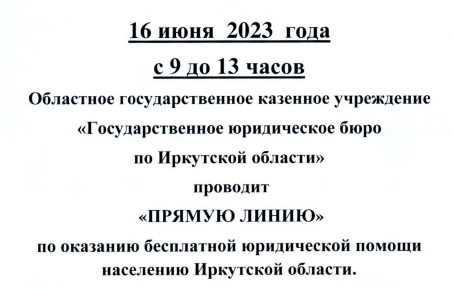 16 июня состоится ПРЯМАЯ ЛИНИЯ по оказанию бесплатной юридической помощи