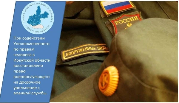 Уполномоченным по правам человека в Иркутской области оказана помощь военнослужащему по вопросам досрочного увольнения с военной службы по состоянию здоровья, а также выплате денежного довольствия в полном объеме