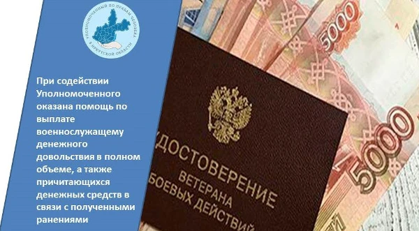 При содействии Уполномоченного оказана помощь по выплате военнослужащему денежного довольствия в полном объеме, а также причитающихся денежных средств в связи с полученными ранениями