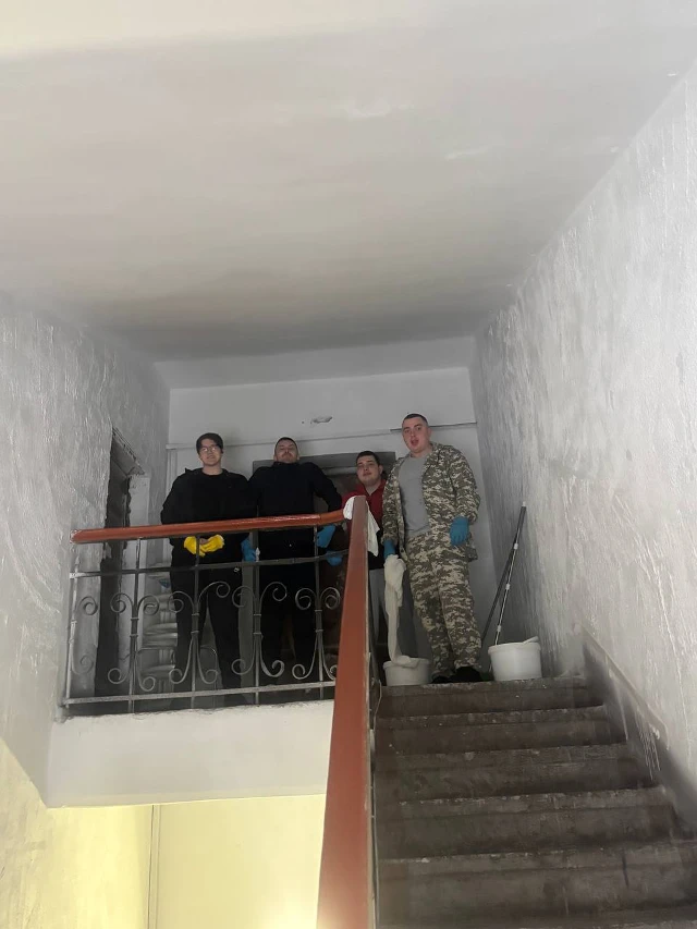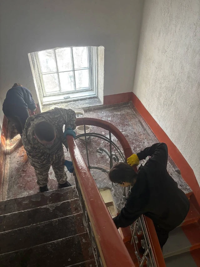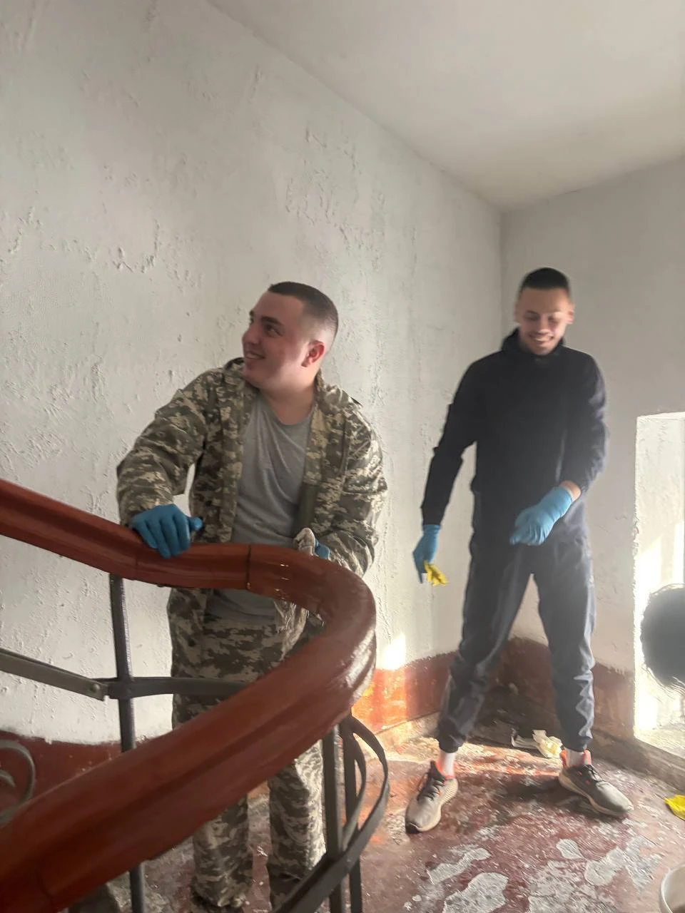 В рамках мероприятия участники убрали внутренние помещения и лестничные проемы, помогая создать более комфортные условия для наших защитников.