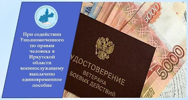 При содействии Уполномоченного по правам человека в Иркутской области военнослужащему выплачено единовременное пособие в соответствии с ч. 3 ст. 3 Федерального закона от 7 ноября 2011 г. № 306-ФЗ «О денежном довольствии военнослужащих и предоставлении им отдельных выплат»