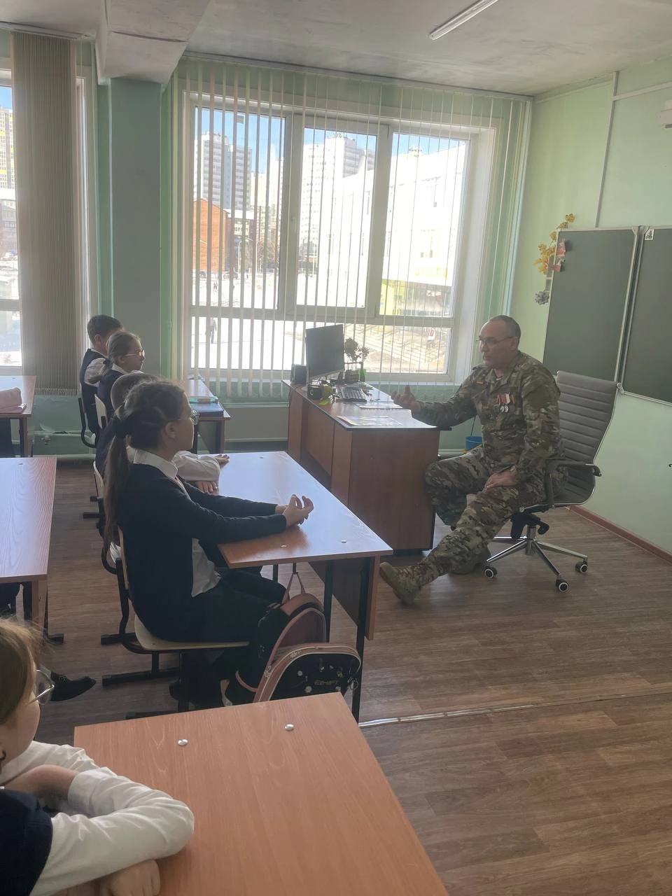Сотрудником аппарата Уполномоченного по правам человека в Иркутской области был проведен урок патриотического воспитания с учениками 5 класса в МБОУ СОШ№57 г. Иркутска при участии ветерана специальной военной операции, участника программы «Герои Приангарья» Д.С. Зубенцева.