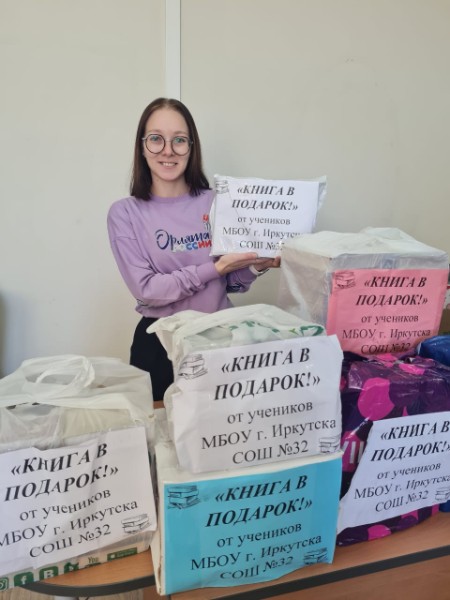 Последняя партия книг, около 100 штук, переданная в рамках Акции, собрана педагогами, родителями и учениками МБОУ города Иркутска «СОШ №32». Педагог-организатор школы Анастасия Воронцова (на фото) рассказала, что после размещения новости об Акции в школьном чате, желающих принять участие в мероприятие оказалось довольно много. Для пожилых людей отобрали самые лучшие книги, которые будут им интересны.