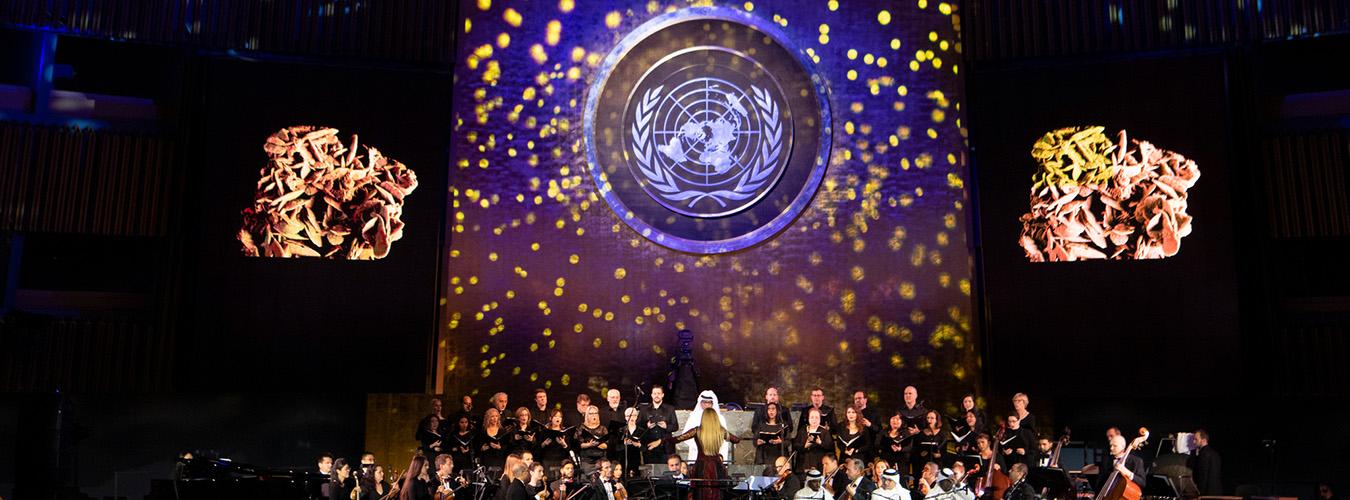 Концерт, посвященный Дню ООН, будет транслироваться в прямом эфире на странице телевидения ООН (webtv.un.org) и каналах ООН в социальных сетях.