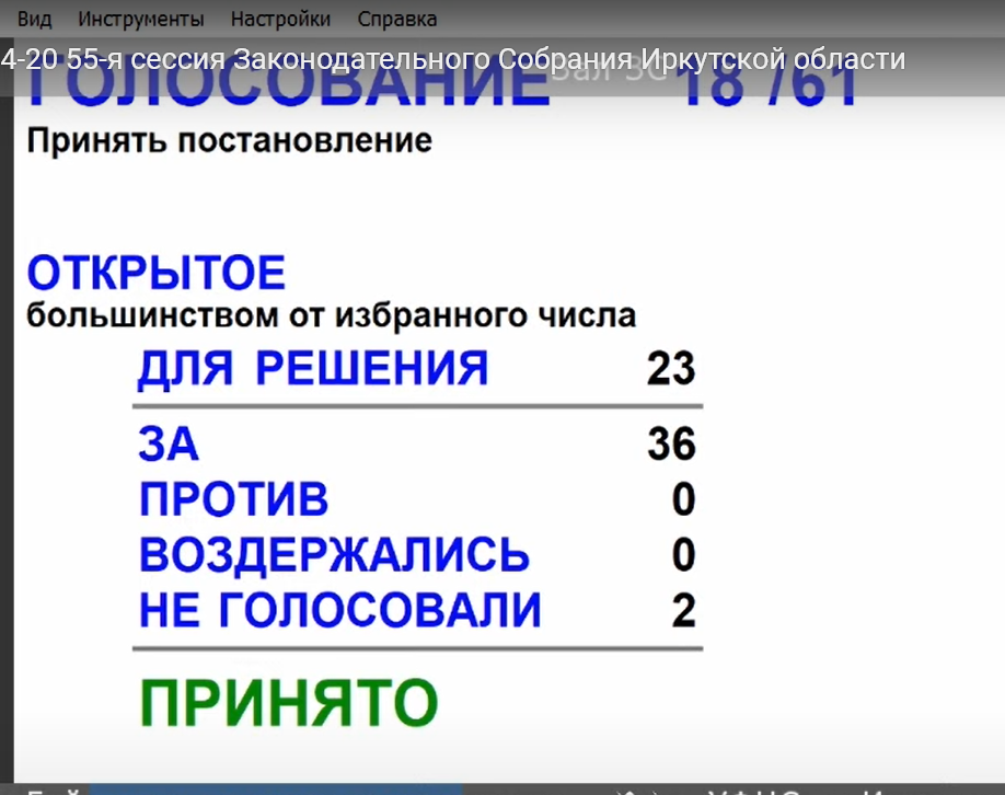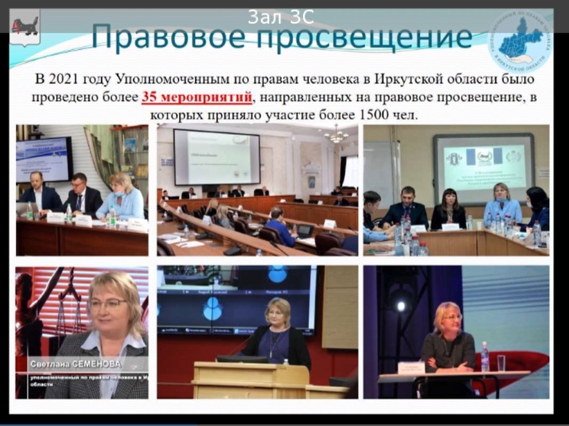 На 55-й сессии Законодательного Собрания Иркутской области 20 апреля был представлен Доклад Уполномоченного по правам человека в Иркутской области Светланой Семеновой за 2021 год с информацией о результатах деятельности Уполномоченного, его оценки ситуации с соблюдением прав и свобод, а также изложения рекомендаций по мерам государственного реагирования на нарушения прав человека и гражданина в Иркутской области.