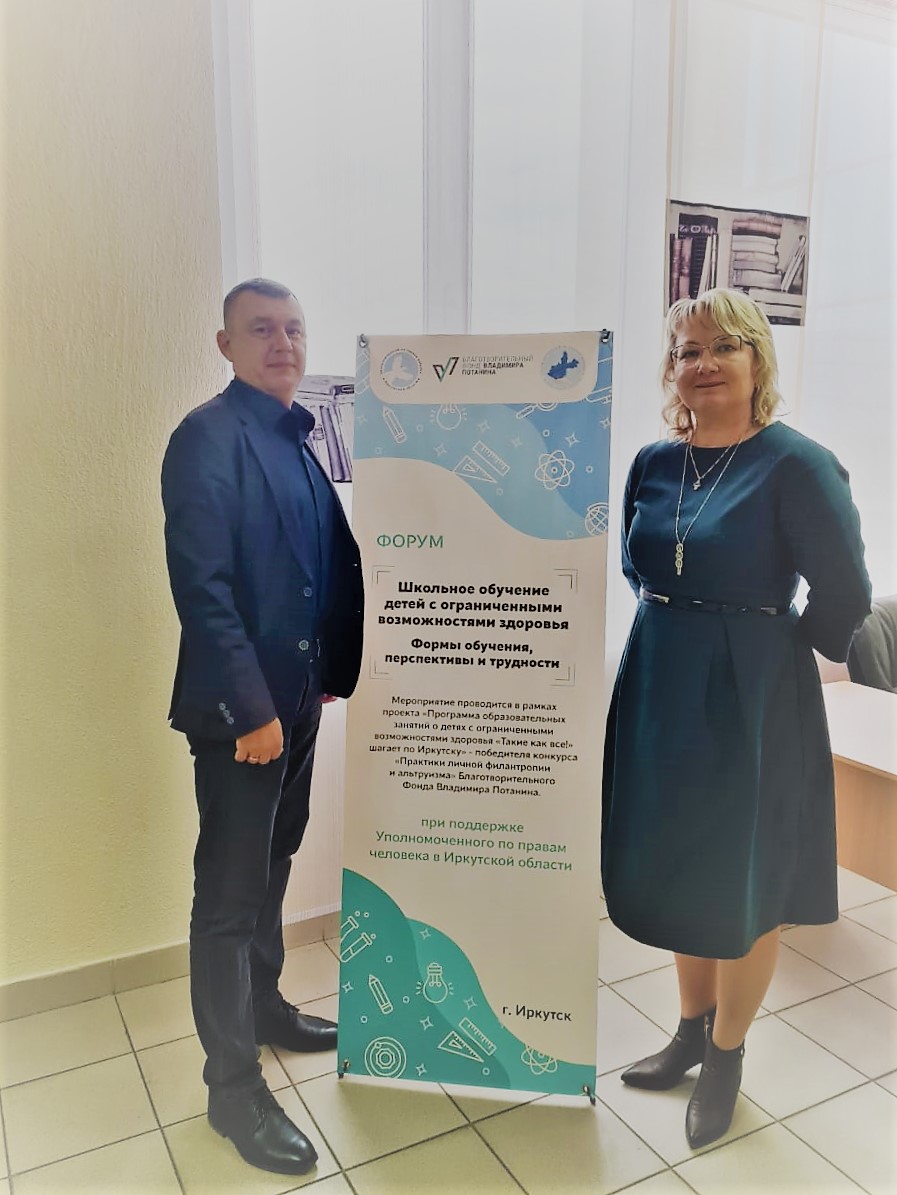 Изначально, форма такого мероприятия предполагалась в виде консультационных встреч родителей и экспертов. Начав реализовывать в целом свой Проект, Лисаускайте В.В. обратилась к Уполномоченному по правам человека в Иркутской области, Семеновой С.Н., и получила поддержку организовать и провести совместно, но уже полноценную диалоговую общественную площадку – Форум "Школьное обучение детей с ограниченными возможностями здоровья: формы обучения, перспективы и трудности".
