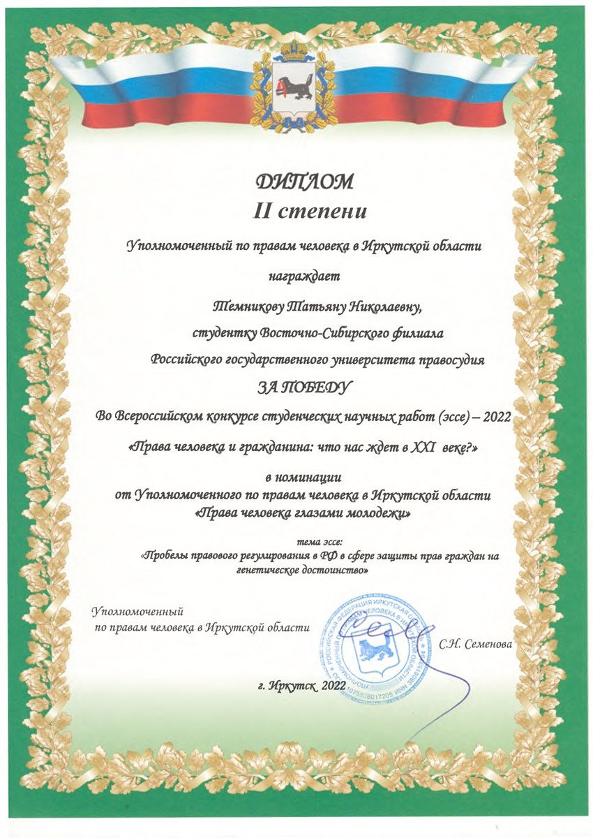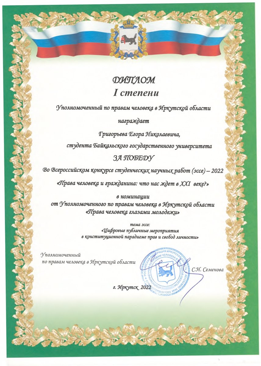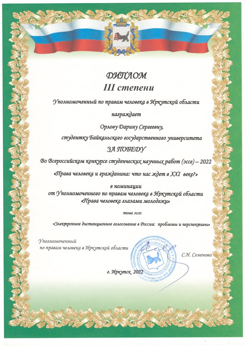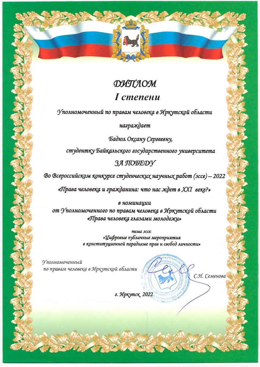 В Байкальском государственном университете подведены итоги Всероссийского конкурса студенческих научных работ (эссе)-2022 «Права человека и гражданина: что нас ждет вXXI веке?».