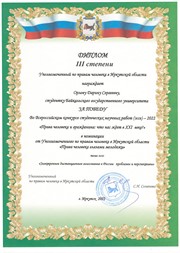 Кроме того, Уполномоченный и сотрудники аппарата выступили экспертами студенческих научных работ.