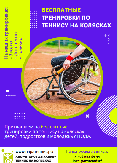 ⚡АНО «Второе дыхание» приглашает на бесплатные тренировки по теннису на колясках детей, подростков и молодёжь с ПОДА.