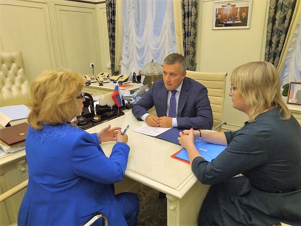 Вопросы социальной поддержки граждан обсудил на встрече с Уполномоченным по правам человека в РФ Татьяной Москальковой Губернатор Иркутской области Игорь Кобзев. Во встрече приняла участие Уполномоченный по правам человека в Иркутской области Светлана Семёнова.