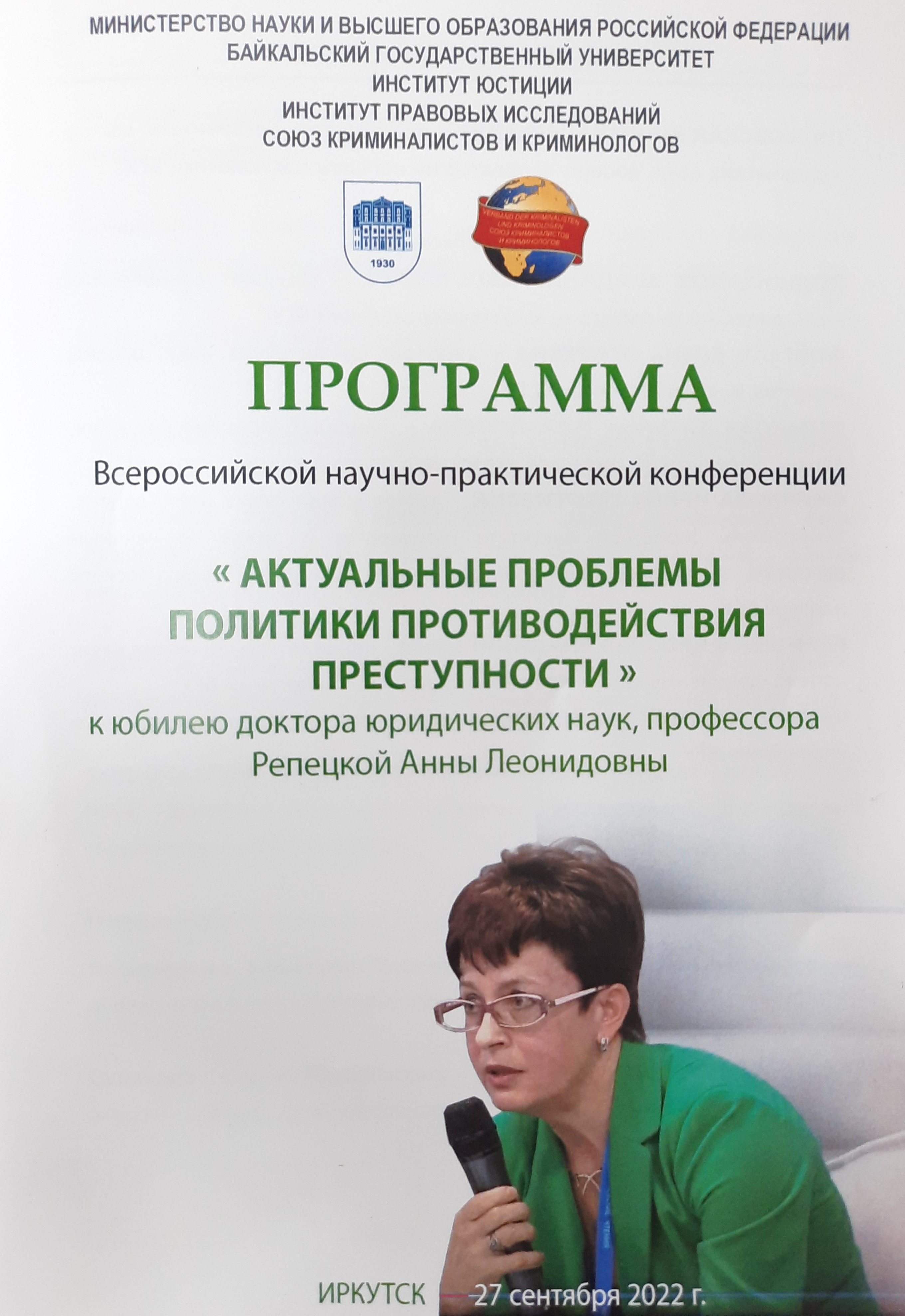 27 сентября 2022 года сотрудники аппарата Уполномоченного по правам человека в Иркутской области приняли участие во Всероссийской научно-практической конференции «Актуальные проблемы политики противодействия преступности» (к юбилею доктора юридических наук, профессора Репецкой Анны Леонидовны).