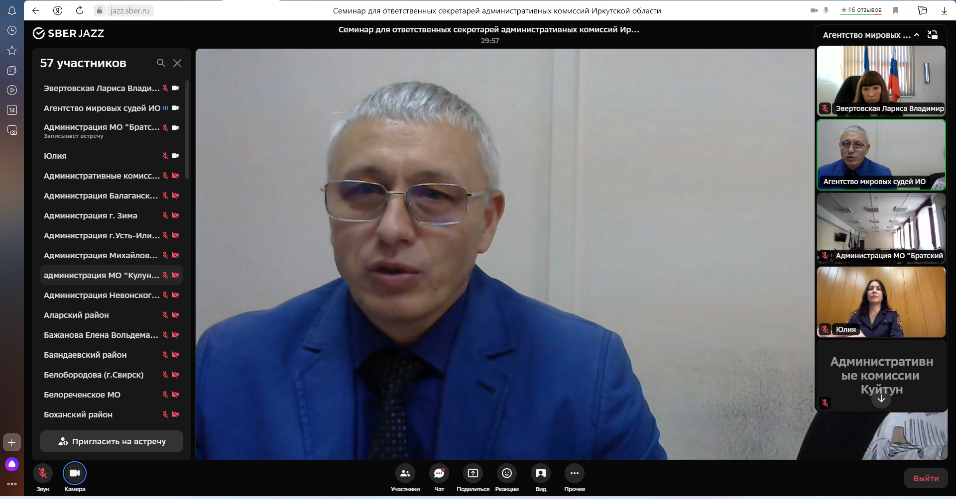 Семинар организован агентством по обеспечению деятельности мировых судей Иркутской области в формате виде-конференции, что позволило привлечь к участию более 60 ответственных секретарей административных комиссий, в том числе из труднодоступных и удаленных территорий Иркутской области.