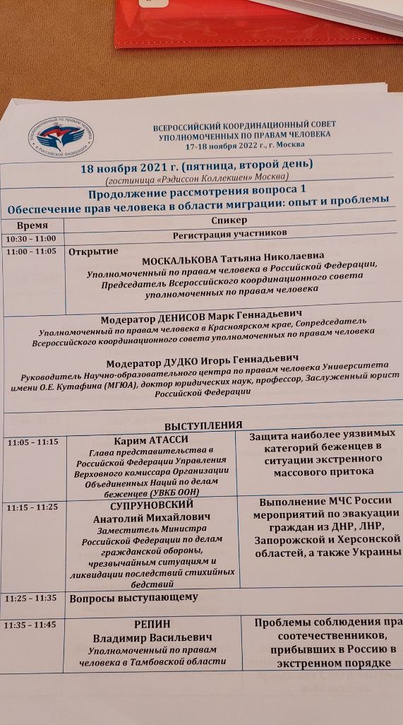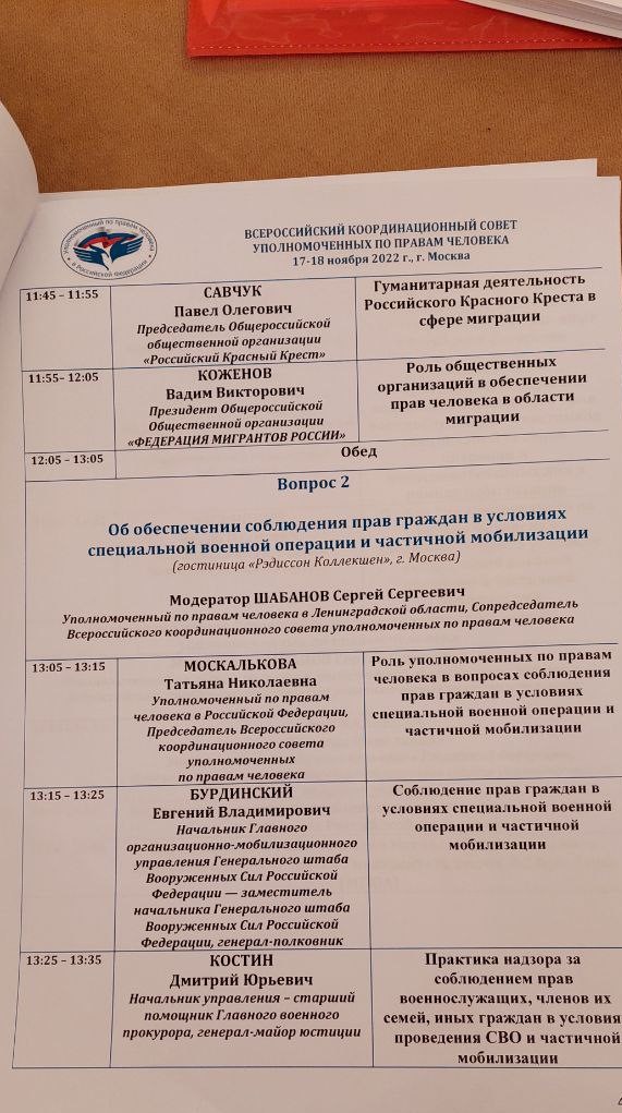 Очень насыщенным был второй день Всероссийского Координационного совета Уполномоченных по правам человека. Вопросы сложные, порой неурегулированные, требующие согласованной и взвешенной позиции. Говорили об обеспечении прав граждан в условиях СВО и частичной мобилизации, об имеющихся проблемах и, главное, о взаимодействии по решению помощи семьям, чьи близкие защищают Отечество. О тех, кто требует поддержки, так как муж, сын, брат числится пропавшими без вести или находится в плену. О предложениях, которые в том числе необходимо срочно решать. С нами работали представители Министерства обороны РФ, военной прокуратуры, депутаты Гос. Думы, МЧС РФ, и иных ведомств. Работа продолжается.