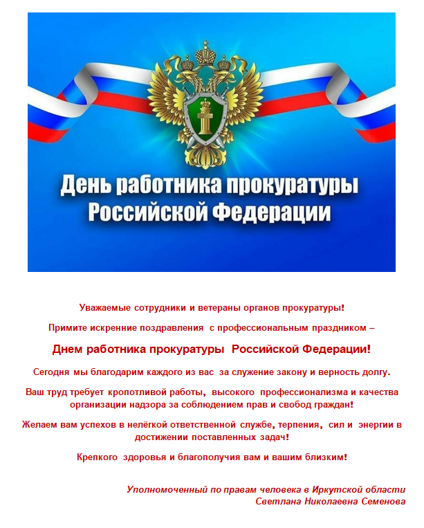 Поздравление Уполномоченного по правам человека в Иркутской области с Днем работника прокуратуры Российской Федерации