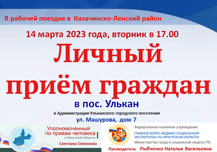 Личный приём граждан состоится в посёлке Улькан 14 марта 2023 года