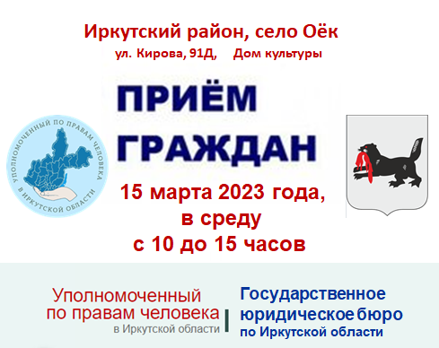 Специалисты аппарата Уполномоченного по правам человека в Иркутской области и специалисты Госюрбюро по Иркутской области проведут в Оёкском муниципальном образовании прием граждан для оказания
