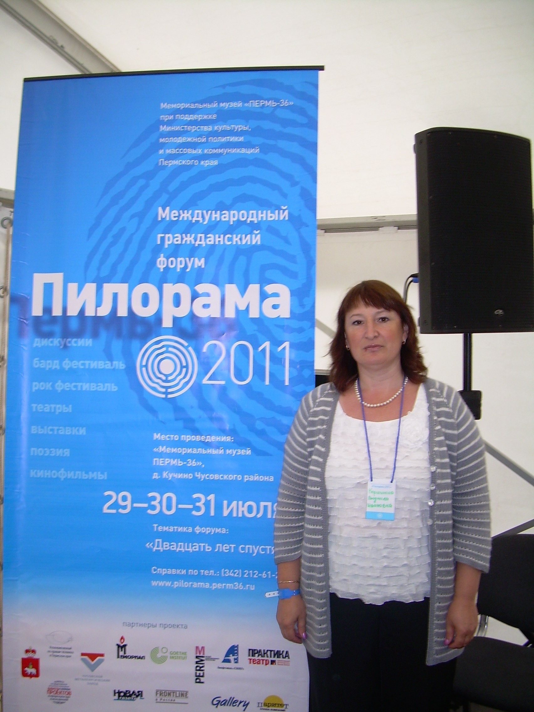 В данном форуме приняла участие представитель аппарата Уполномоченного по правам человека в Иркутской области Коршунова Л.И, которая посетила несколько дискуссионных площадок, посмотрела выставки и музей истории политических репрессий "Пермь-36". Конечно, не удалось побывать на всех мероприятиях, так как хотелось пообщаться с коллегами из других регионов и стран. Хочется отметить, что в ходе форума царила необычная атмосфера, которая была направлена на осознание темы: «Мир несвободы и культура. 20 лет спустя» и вопросов звучавших на форуме: В чем плюсы и минусы прошедших лет и настоящего времени? Какова позиция гражданского общества? Есть ли свода слова в СМИ?