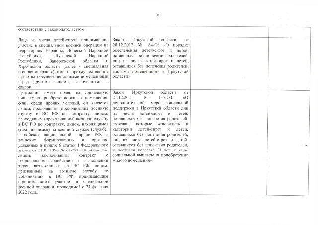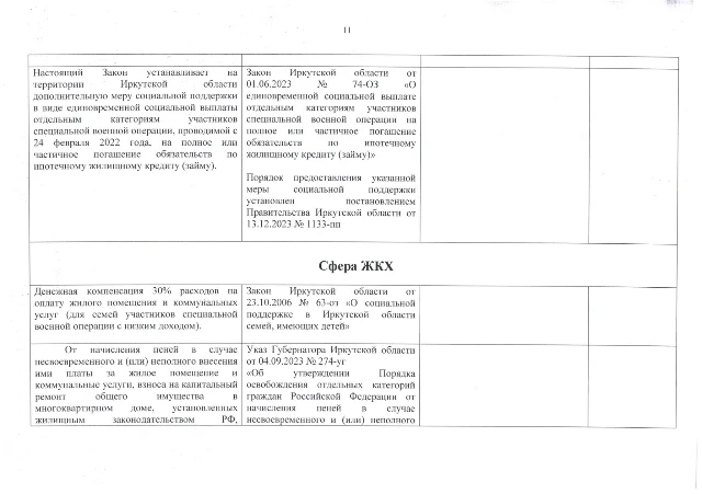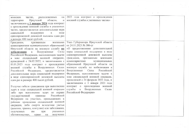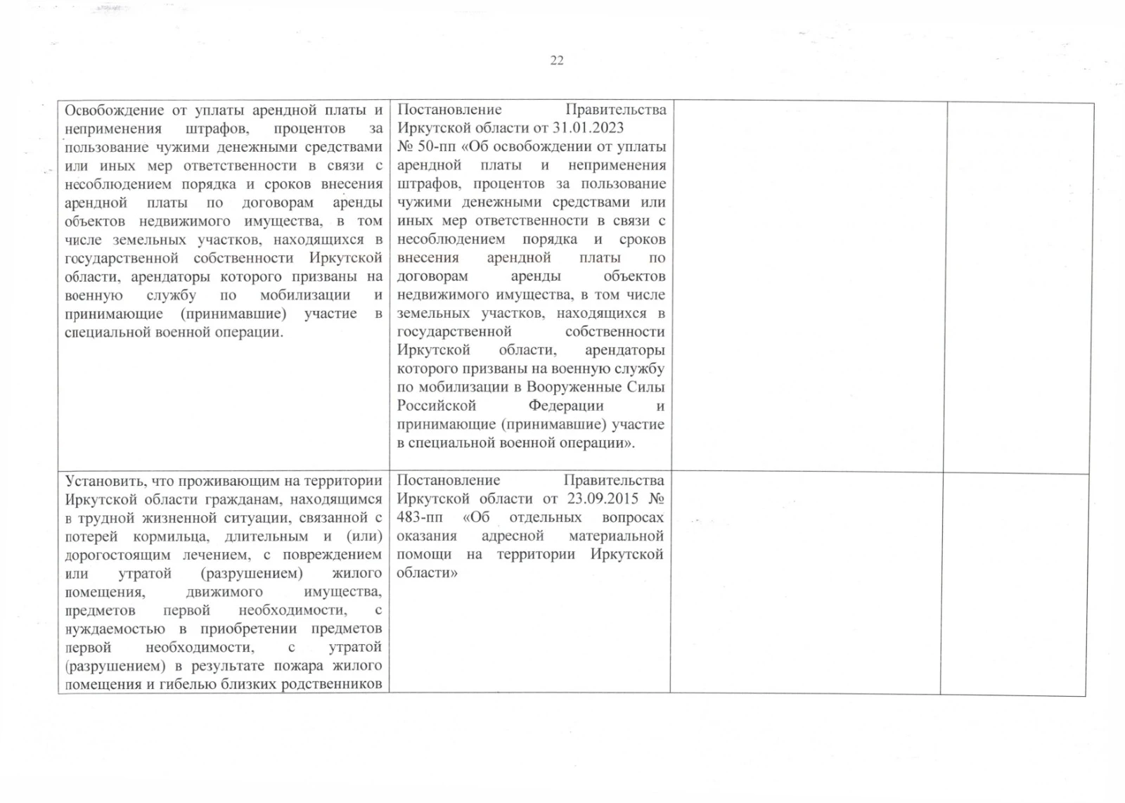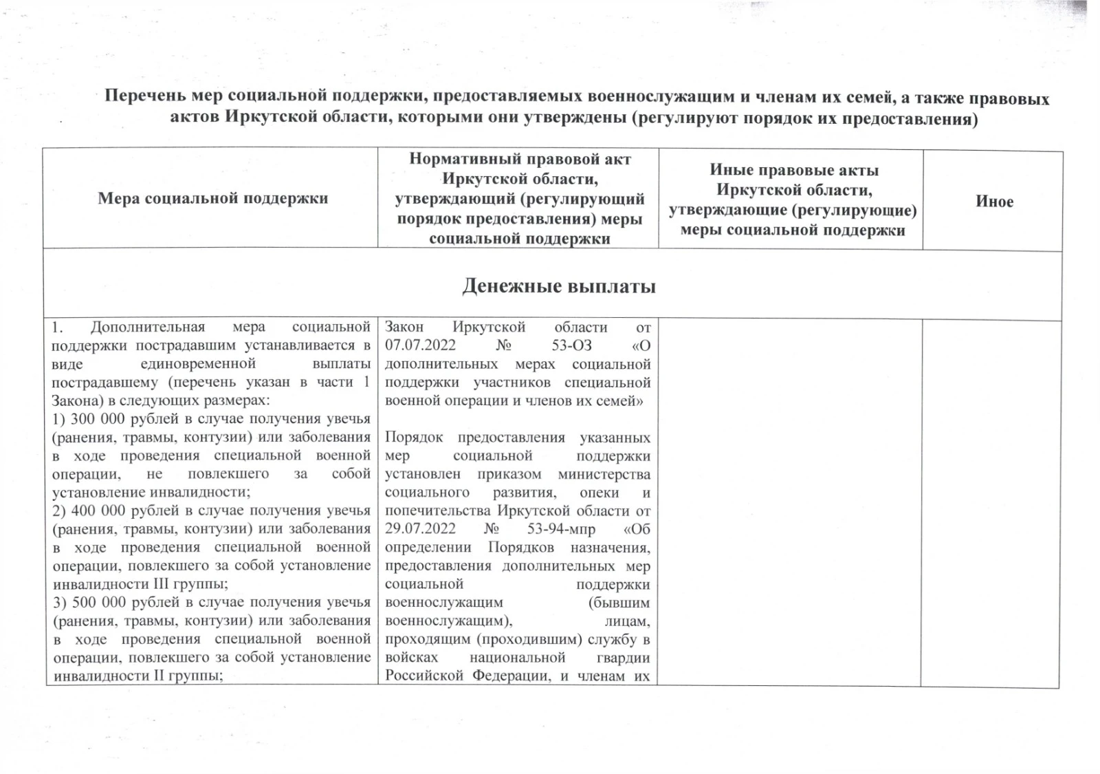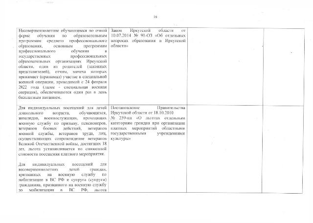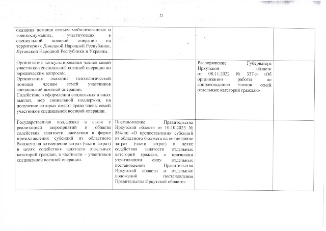[Перечень региональных и муниципальных льгот и мер социальной поддержки, предоставляемых в настоящее время военнослужащим и членам их семей, с указанием нормативных правовых актов Иркутской области, которыми они утверждены]