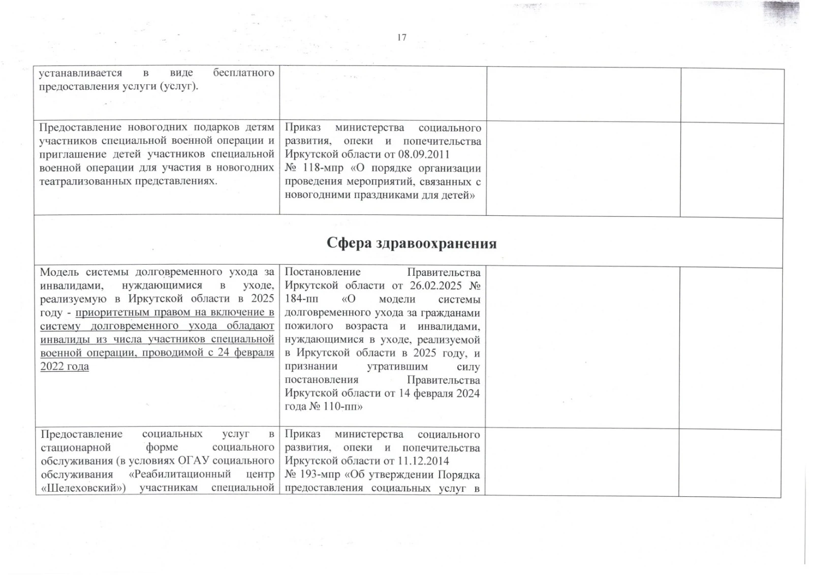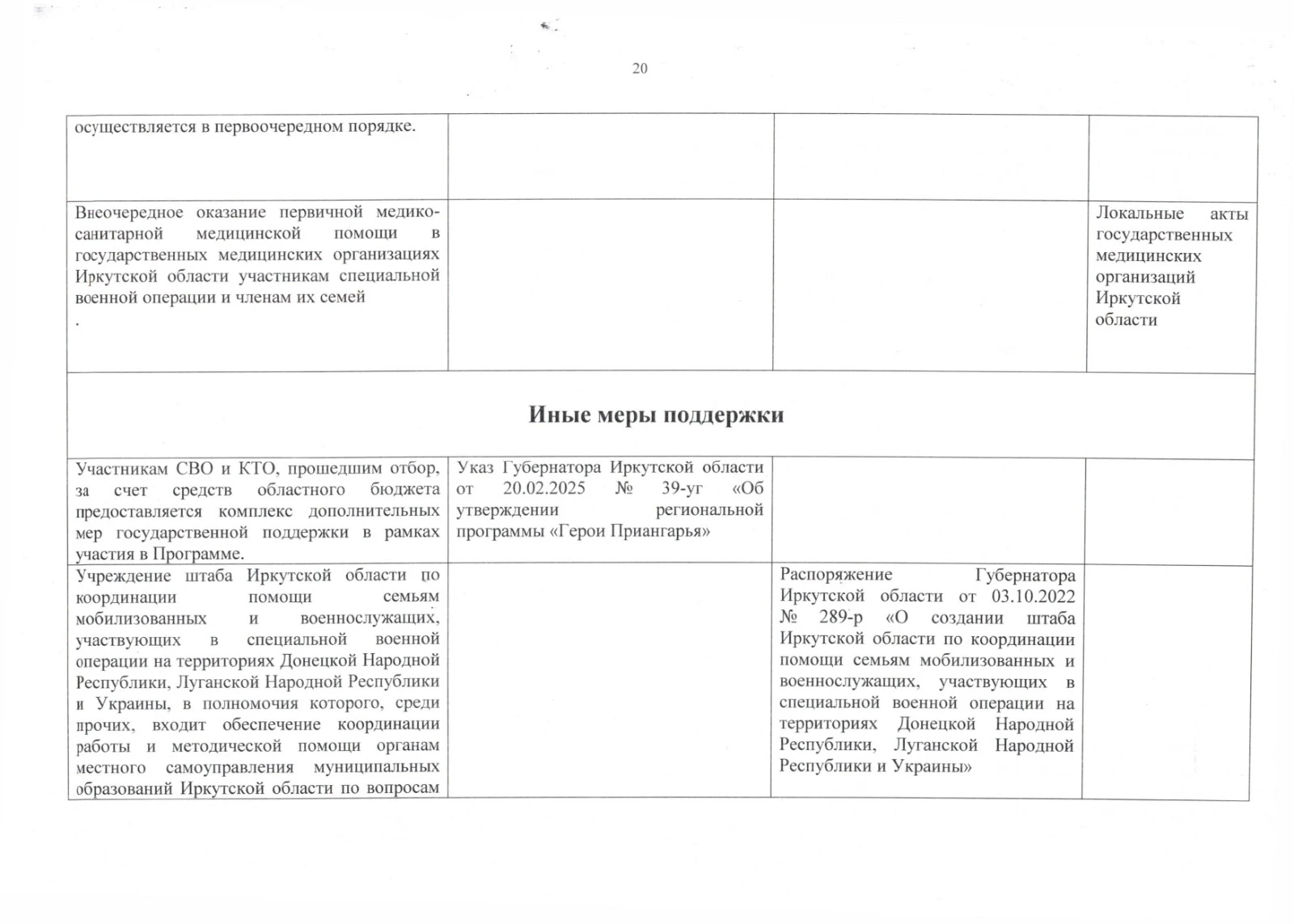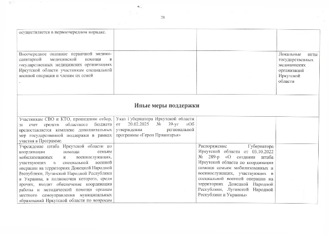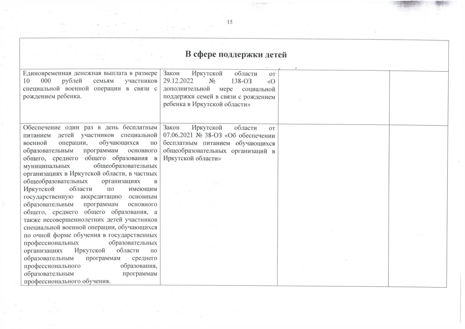 [Перечень региональных и муниципальных льгот и мер социальной поддержки, предоставляемых в настоящее время военнослужащим и членам их семей, с указанием нормативных правовых актов Иркутской области, которыми они утверждены]